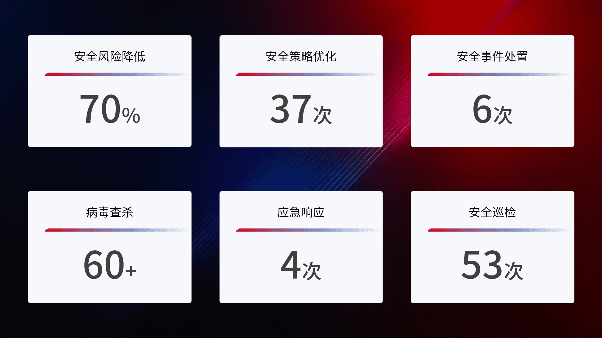 综合报告与文档服务: 定期提供安全事件处置报告、、、周/季度总结报告和年度总结报告;详尽的文档服务可帮助客户了解网络安全状况,,,,支持决策制定和流程优化。。